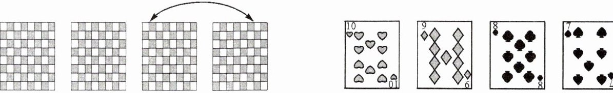 仔细观察下面4张扑克牌位置的变化过程,写出这4张牌原来是怎样放的。