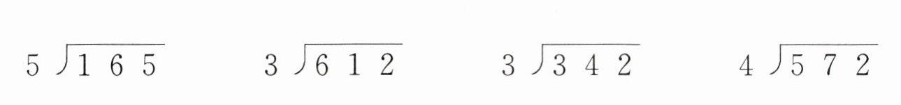 $165÷5$:被除数的百位是1,小于5,所以商是两位数。