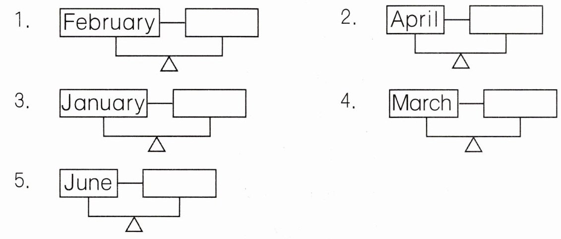 【答案】:1. Feb. 2. Apr. 3. Jan. 4. Mar. 5. Jun.