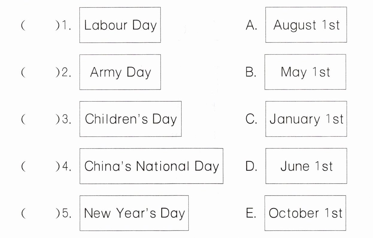 1. Labour Day即劳动节,在中国,劳动节的日期是5月1日,所以对应B选项。