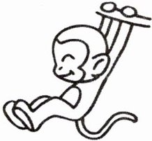 1. 猴子在秋千上,应该是在荡秋千,用“swinging”表示。