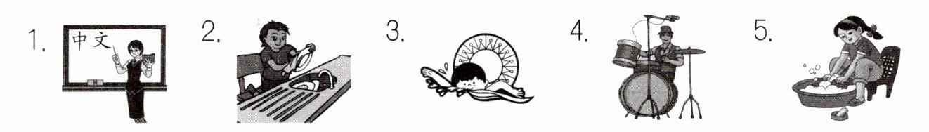 Ⅱ. 给下列图片选择相应的词组,将其序号填入括号里。