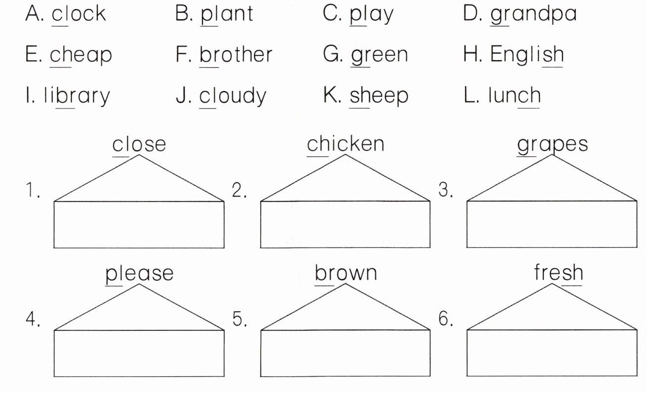 Ⅰ. 读一读,将下列画线部分读音相同的单词送回家,将其序号填在房子里。