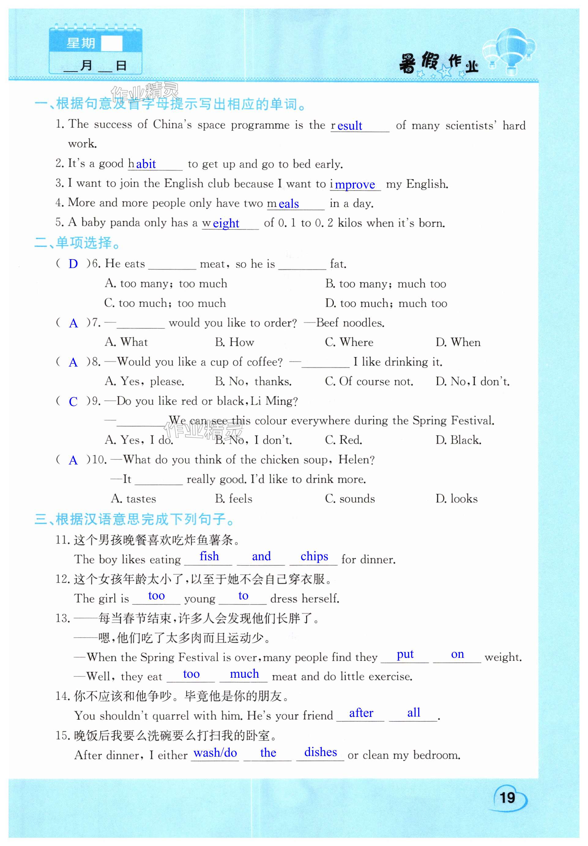 注:目前有些书本章节名称可能整理的还不是很完善,但都是按照顺序排列的,请同学们按照顺序仔细查找。练习册 2025年暑假作业假期园地中原农民出版社七年级英语人教版 答案主要是用来给同学们做完题方便对答案用的,请勿直接抄袭。