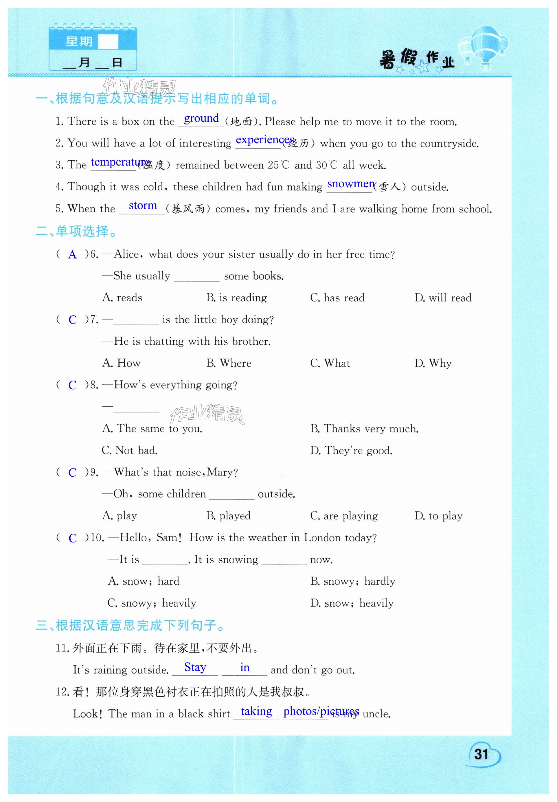 注:目前有些书本章节名称可能整理的还不是很完善,但都是按照顺序排列的,请同学们按照顺序仔细查找。练习册 2025年暑假作业假期园地中原农民出版社七年级英语人教版 答案主要是用来给同学们做完题方便对答案用的,请勿直接抄袭。