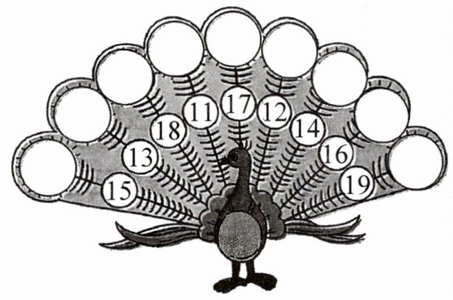 从左到右,从上到下依次为:I(15 - fifteen)、H(13 - thirteen)、A(18 - eighteen)、D(11 - eleven)、C(17 - seventeen)、F(12 - twelve)、B(14 - fourteen)、G(16 - sixteen)、E(19 - nineteen)。