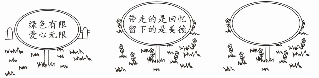 五、欣赏下面草坪上的标语,并请仿写一句爱护花草的标语。