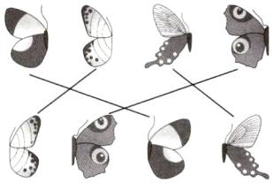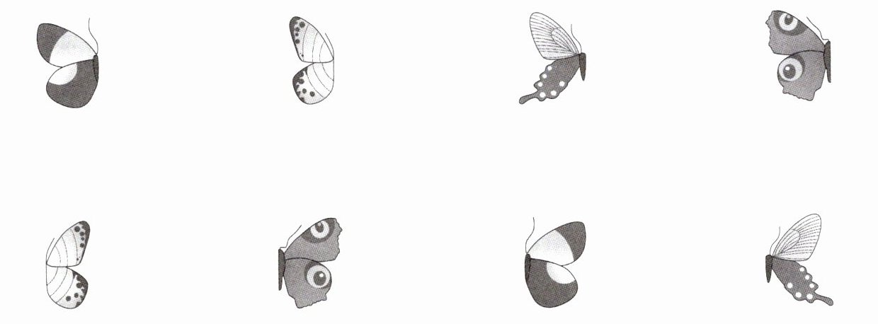 七、以各图中的虚线为对称轴,画出下面轴对称图形的另一半,使它组成美丽的图案。
