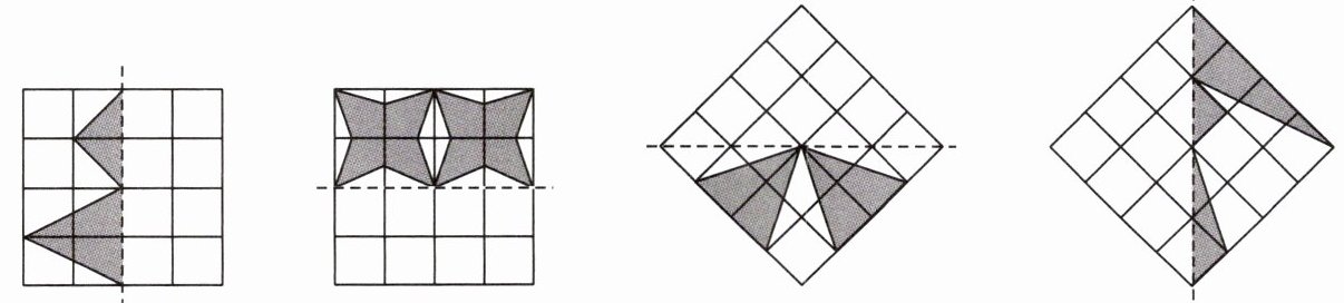 按照上述方法画出各图另一半后组成完整的美丽图案(由于是画图题,无法在此直接呈现最终图形,学生可根据原理自行绘制)。