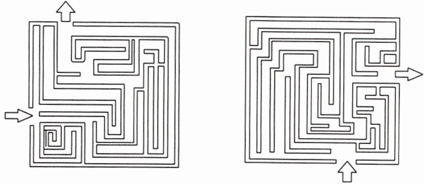 下面是两个迷阵。按照箭头方向,从入口进,出口出,请你试着走走看。