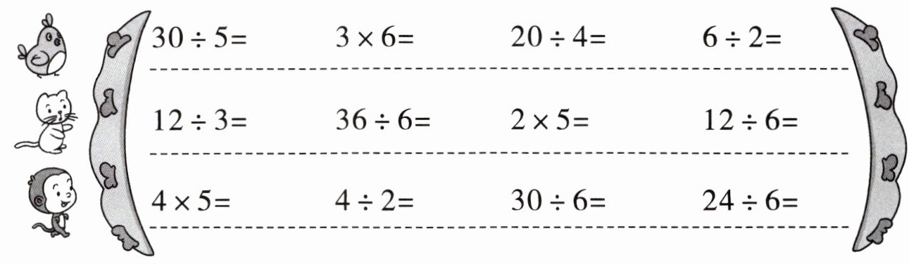 本题可根据图中南瓜的分组情况,结合乘除法的意义进行求解。