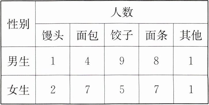 2. 小明调查了全班同学早餐最喜欢吃的主食。