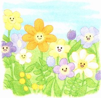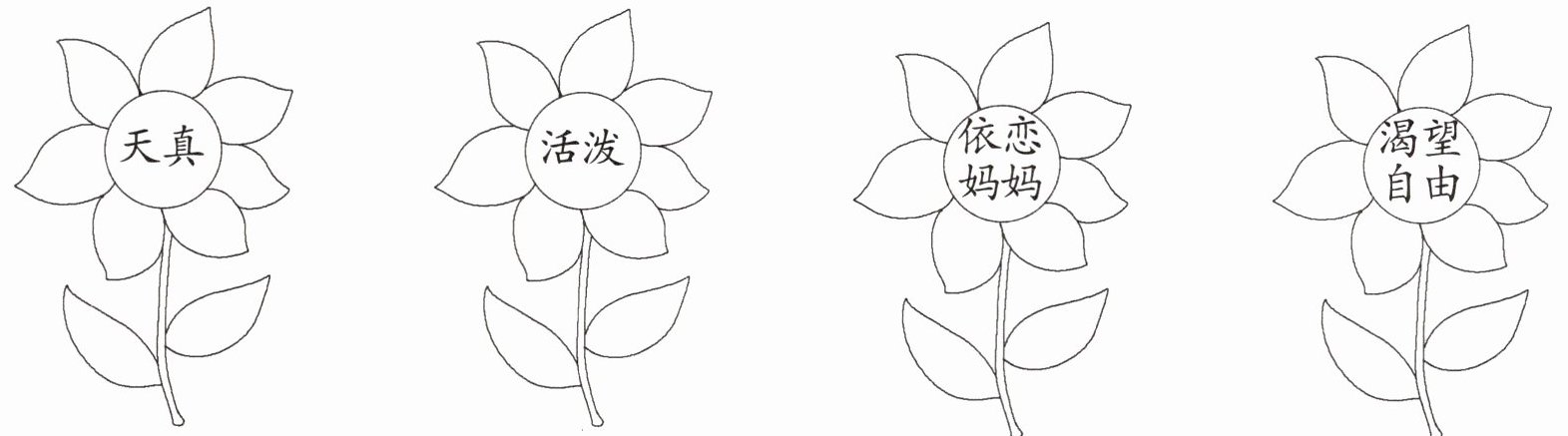 4. 你觉得这是一群怎样的花孩子?请你为描述恰当的花儿涂上自己喜欢的颜色。