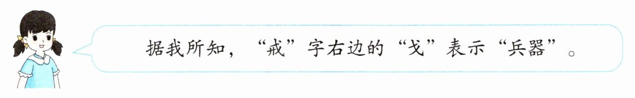 的意思,因此,“戒”字表示手拿着兵器,随时准备战斗的样子。学一学:读一读,了解“戒”字的部分意思。