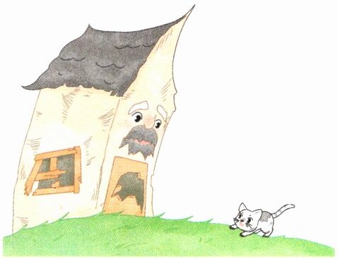 ,老屋!”一个小小的声音在它门前响起,“再过一个晚上,行吗?今天晚上有暴风雨,我找不到一个安心睡觉的地方。”老屋低头看看,吃力地眯(mī)起眼睛:“哦(ò),是小猫啊。好吧,我就再站一个晚上。”
