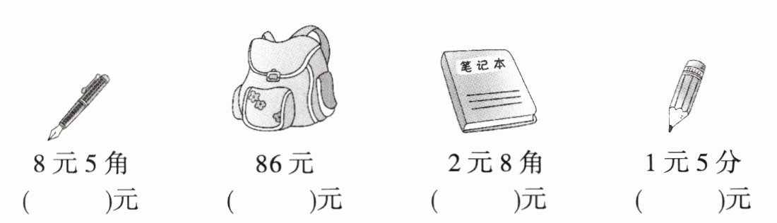1. 给下面的物品加上价签。(以元为单位,用两位小数表示)