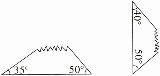2. 下面是两块三角形的玻璃打碎后留下的碎片,你知道它们原来各是什么三角形吗?