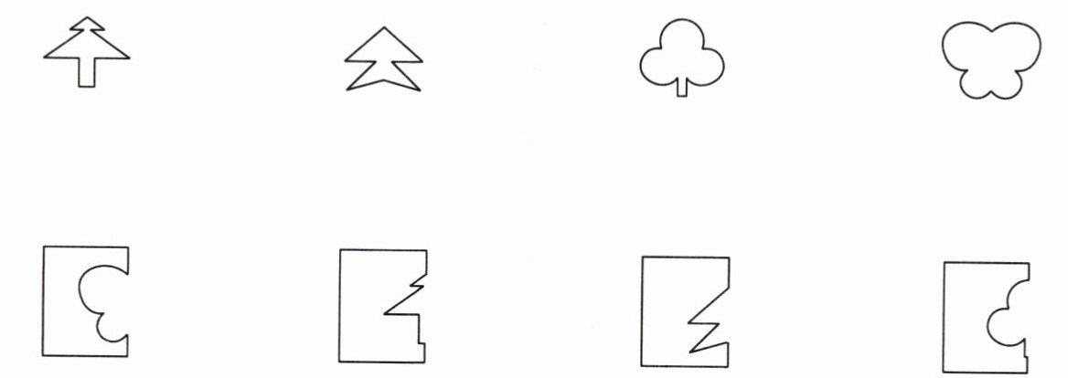 三、下面的图形是从哪张纸上剪下来的?用线连一连。