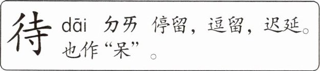 待 dāi ㄉㄞ 停留,逗留,迟延。也作“呆”。