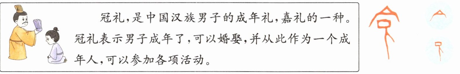所以“冠”就是用手把帽子戴到头上。古代贵族成年时都会举行“冠礼”,就像现在的成人礼,冠礼之后代表长大啦!