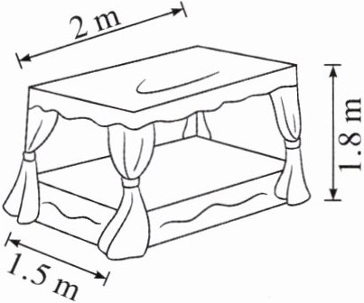 2. 小明家有一个长方体形状的蚊帐(如图),蚊帐四周由钢管固定(地面的四边没有钢管)。固定这样一个蚊帐至少需要多长的钢管?