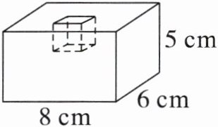 2. 钟叔叔在右面的长方体木块中挖去一个棱长是2cm的小正方体,剩下的木块的表面积是多少平方厘米?