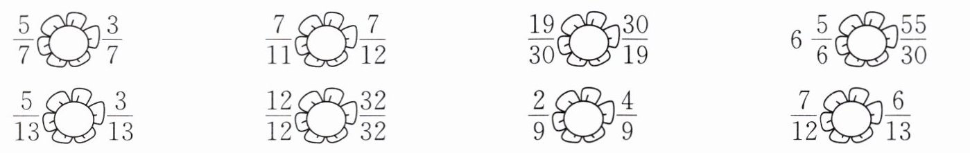 图略 $\frac{5}{15}$ $\frac{10}{30}$ $\frac{5}{6}$ $\frac{20}{24}$