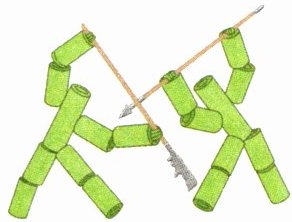 把毛笔杆锯成寸把长的一截,这就是竹节人的脑袋连同身躯了,在上面钻一对小眼,供装手臂用。再锯八截短的,分别当四肢。用一根纳鞋底的线把它们穿在一起,就成了。锯的时候要小心,弄不好一个个崩裂,前功尽弃。