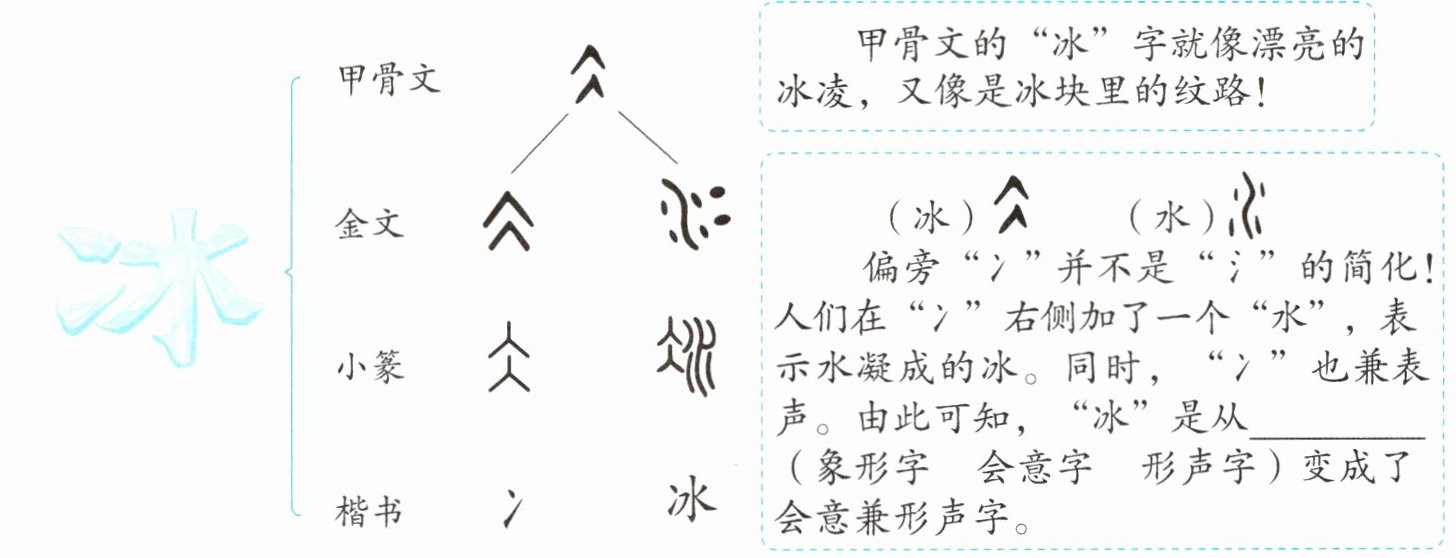 甲骨文的“冰”字就像漂亮的冰凌,又像是冰块里的纹路!