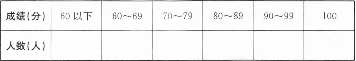 成绩分类 60以下 60~69 70~79 80~89 90~99 100