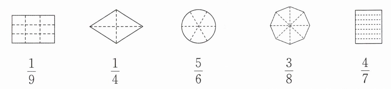 本题可根据分数的意义,确定每个图形被平均分成的份数,再根据分数的分子确定需要涂色的份数。