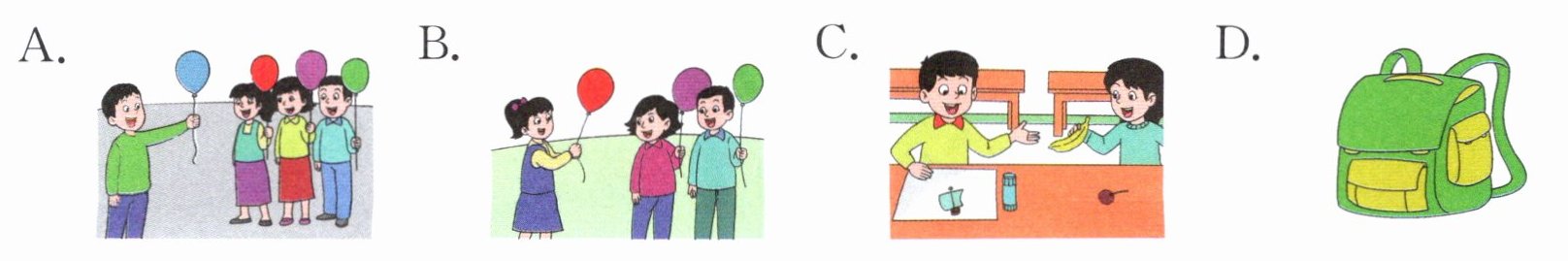 )4. — Look at my balloon. It's blue. — Ha! Ha!