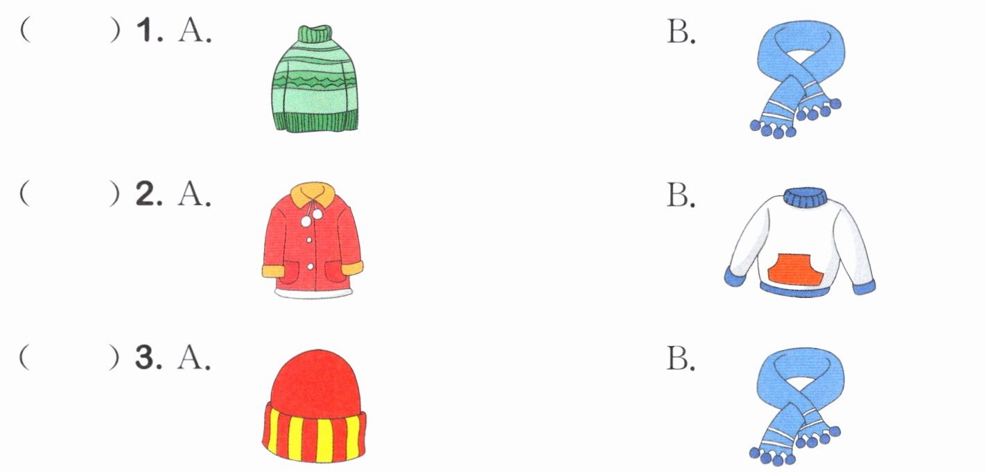 解析:听力内容中的物品是 coat,指的是外套,而图片内容是毛衣。)