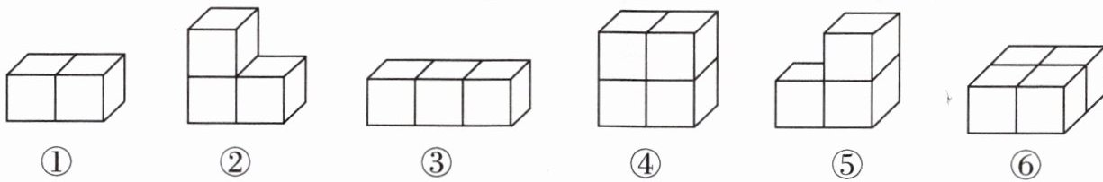 4. 4 个同样大小的正方体紧挨着摆成一横排,从前面看是长方形,从上面看是正方形。 (