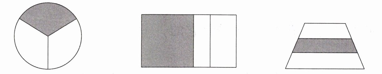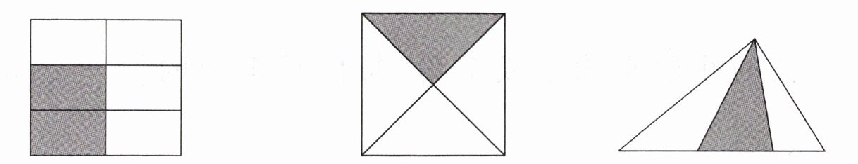 二、下面各图的涂色部分能用分数表示的画“√”,不能表示的画“×”