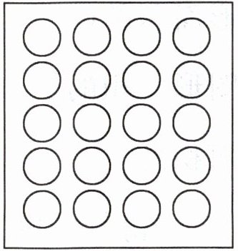 2. 将下图中“○”总个数的$\frac{2}{5}$涂成红色,把剩下的“○”个数的$\frac{3}{4}$涂成黄色。