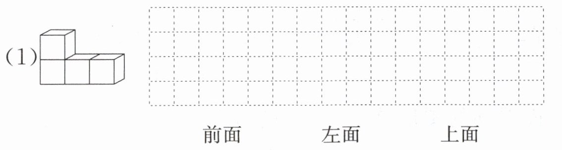 2. 先想一想,再在方格纸上画出下列物体从前面、左面和上面看到的图形。