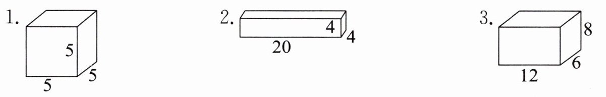 1. 请你在下面图中找出6个面,使它们能够组成一个长方体,这6个面的编号分别是()。