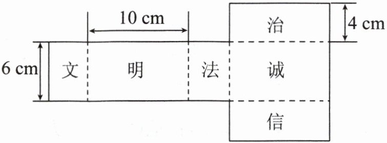 1. 一个长方体的食品盒,长10厘米,宽10厘米,高12厘米。如果围着它贴一圈商标纸(上、下面不贴),这张商标纸的面积至少要多少平方厘米?