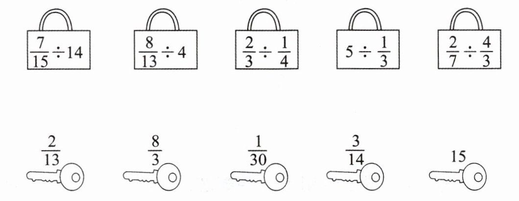 $\frac{7}{15}\div14$与$\frac{1}{30}$相连;