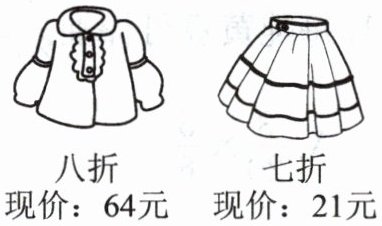1. 服装店进行优惠促销活动,上衣按原价的$\frac {4}{5}$出售,裙子按原价的$\frac {7}{10}$出售(如图)。上衣和裙子的原价分别是多少元?