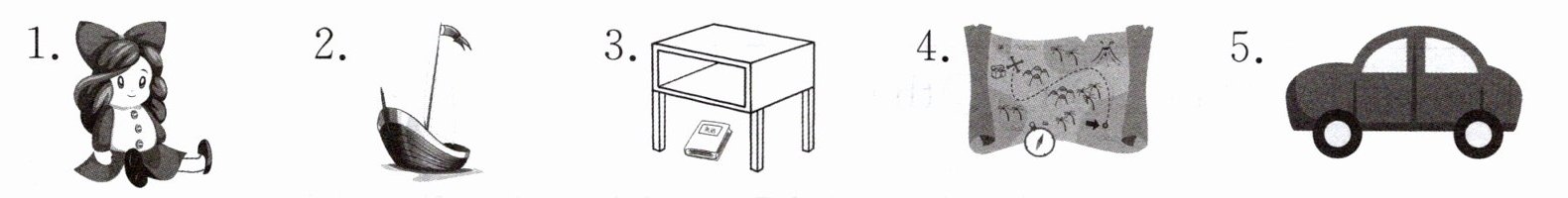 看图,将下列字母重新排序组成单词,并写在对应的四线三格中。