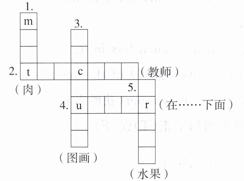 1. meat 2. teacher 3. picture 4. und 5. fruit