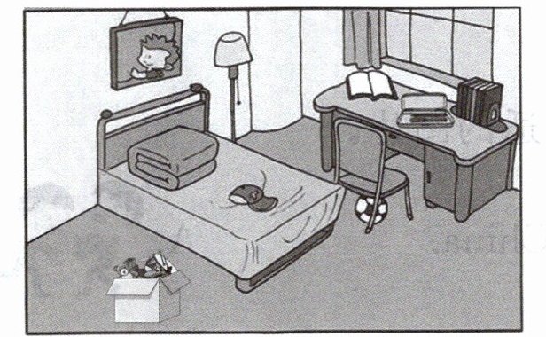 Hello, everyone! Welcome to my room! Look! My 1. ______ (map/picture) is on the wall. My 2. ______ (cap/doll) is on the bed. My 3. ______ (bag/books) and my pencil box are on the desk. And my toys are 4. ______ (in/on) the box. But where is my ball? Oh, it's 5. ______ (on/under) the chair.