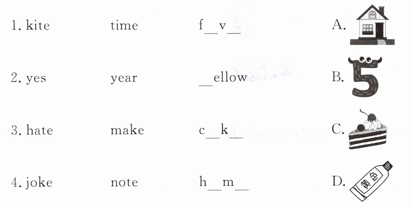 1. i;e—B 2. y—D 3. a;e—C 4. o;e—A