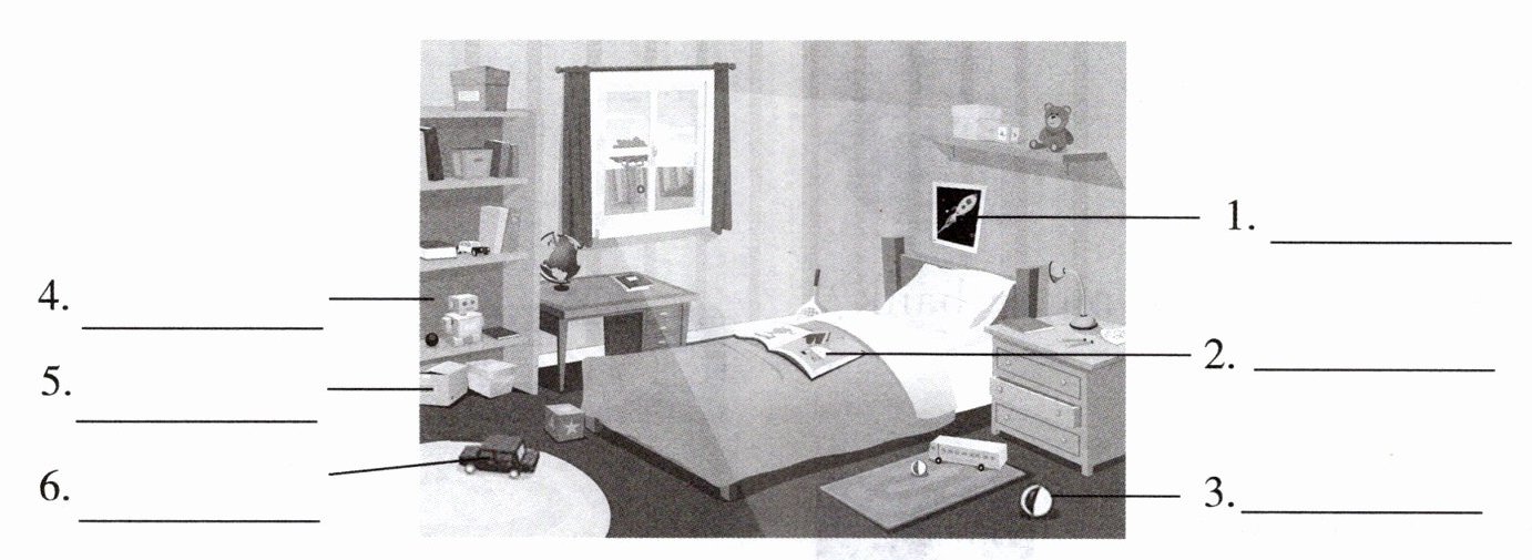 A. ball B. shelf C. book D. picture E. box F. car
