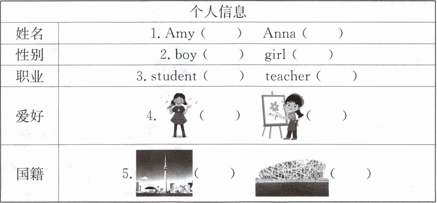阅读下面的自我介绍,完成个人信息表,在正确的选项后打“√”。
