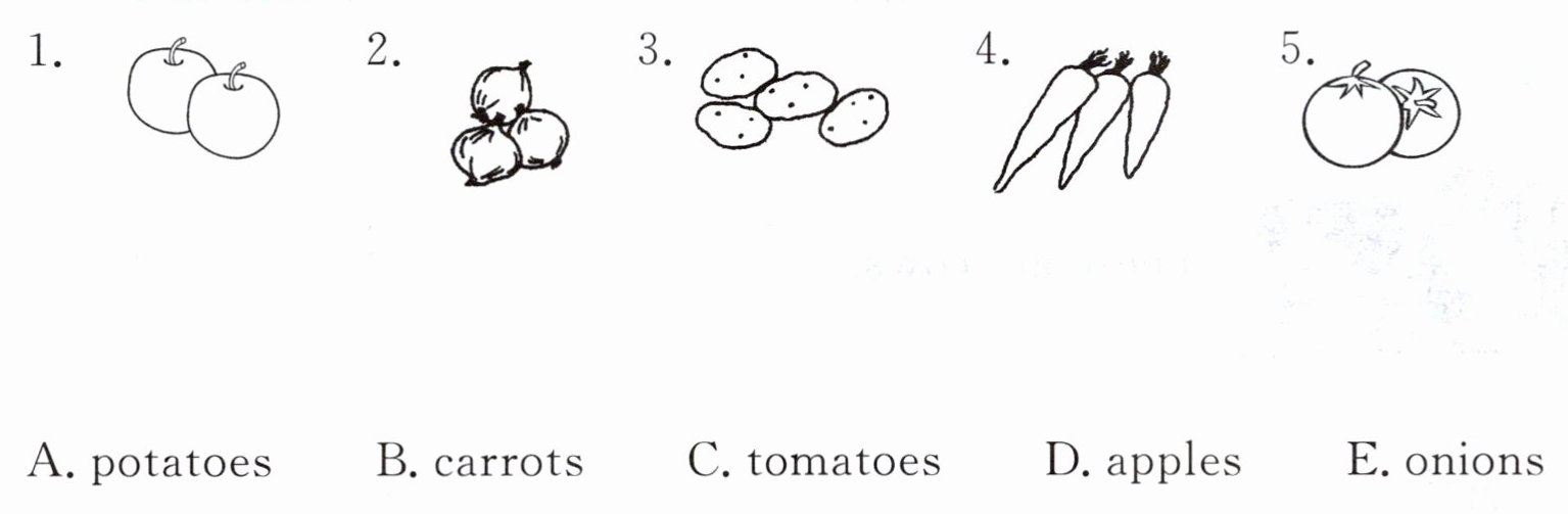 1. onion 2. thirteen 3. this 4. tomato 5. cute