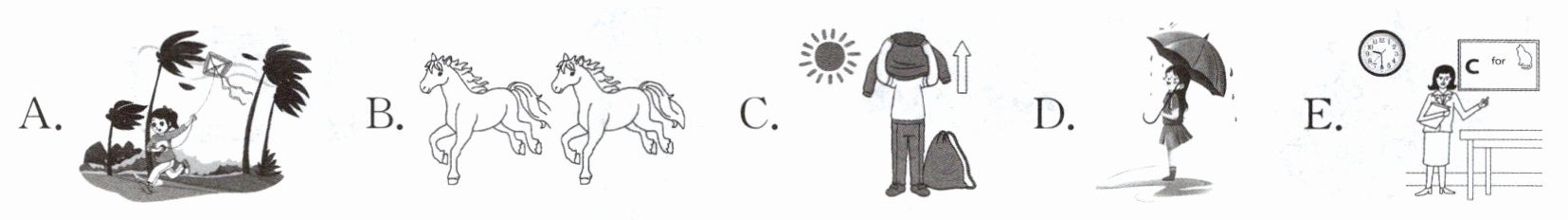 四、找朋友(选择与句意相符的图片,将其序号填入题前括号里)