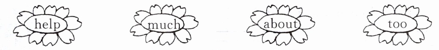 1. much 2. too 3. help 4. about